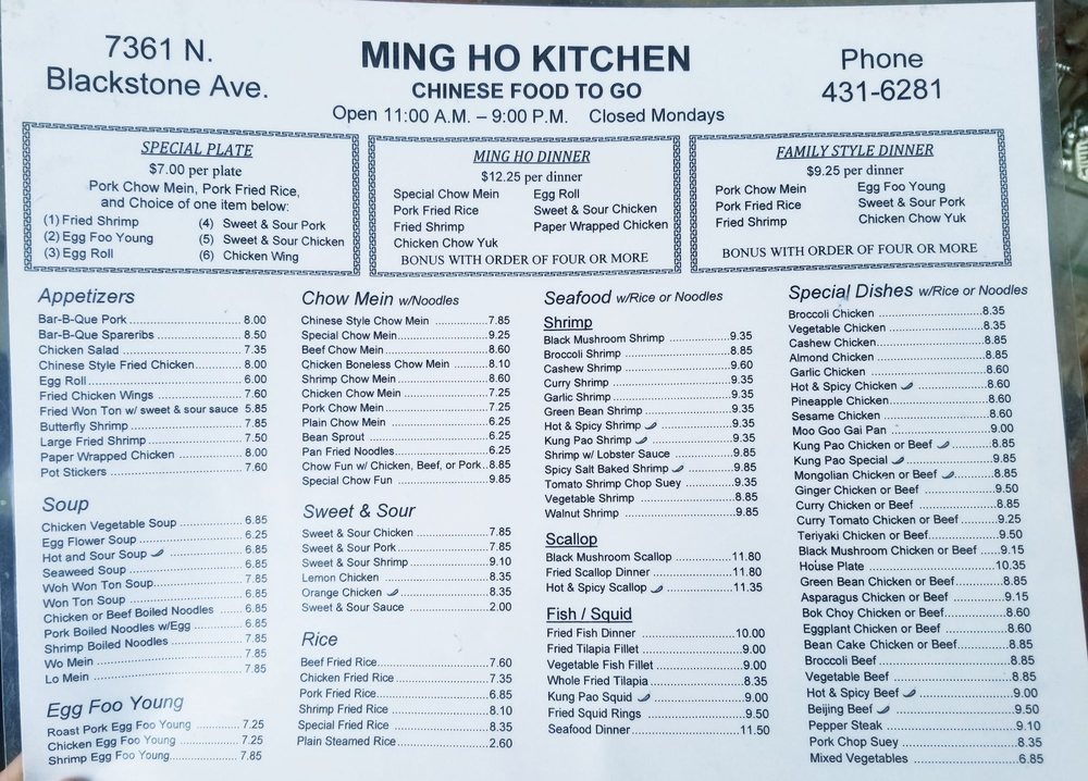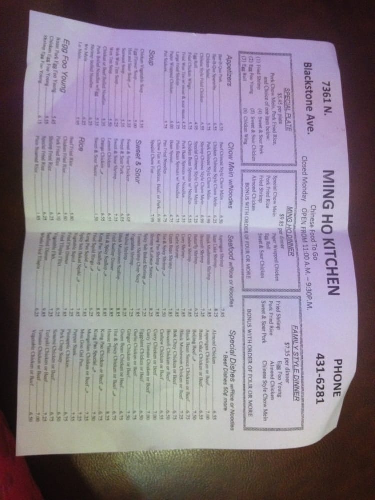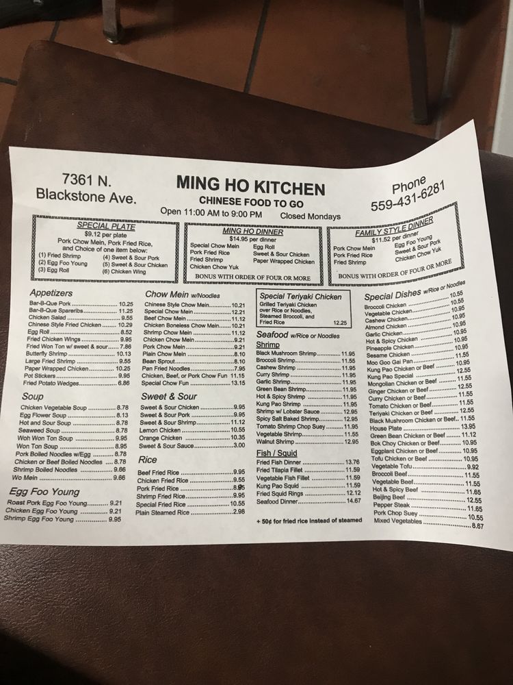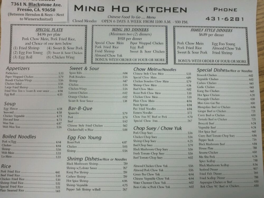 Ming Ho Kitchen is a Chinese restaurant located at 7361 N Blackstone Ave Fresno, CA. With a diverse menu that includes many vegetarian options and generous portion sizes, Ming Ho Kitchen has gained a loyal customer base. Customers praise the quality of the traditional Chinese dishes, highlighting the friendly service and reasonable prices. The owners, a husband and wife team, ensure a pleasant dining experience during busy periods. The restaurant's small interior may limit seating options, but the food is well worth the wait. Whether you opt for takeout or dine-in, Ming Ho Kitchen offers an authentic taste of Chinese cuisine that will leave you craving more.